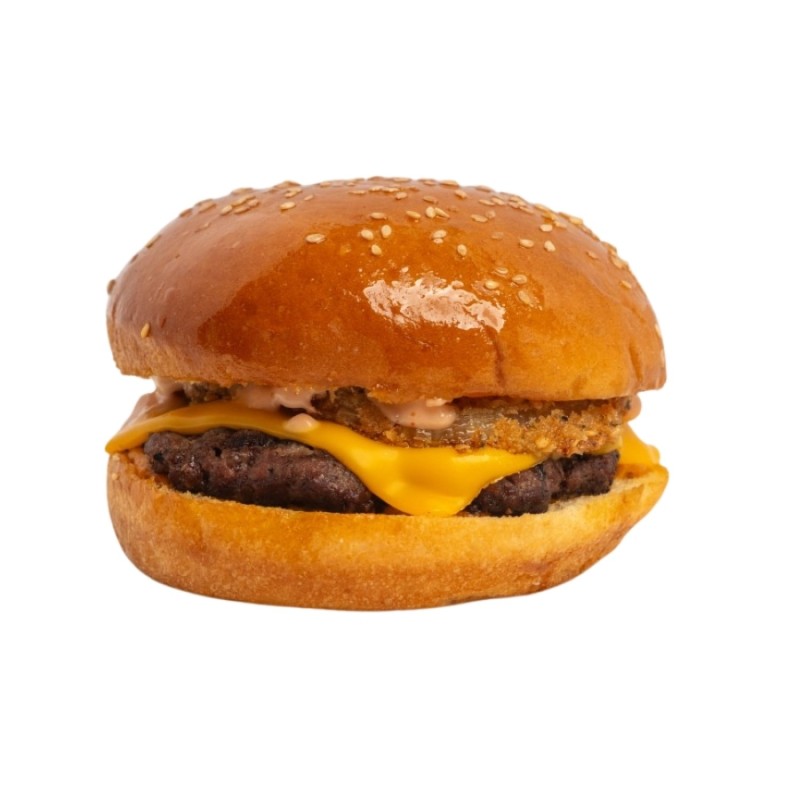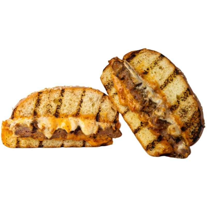 (753 سعرة حرارية)لحم بالخلطة الخاصة - بصل مكرمل - مخلل خيار - جبن - صوص شطيرة